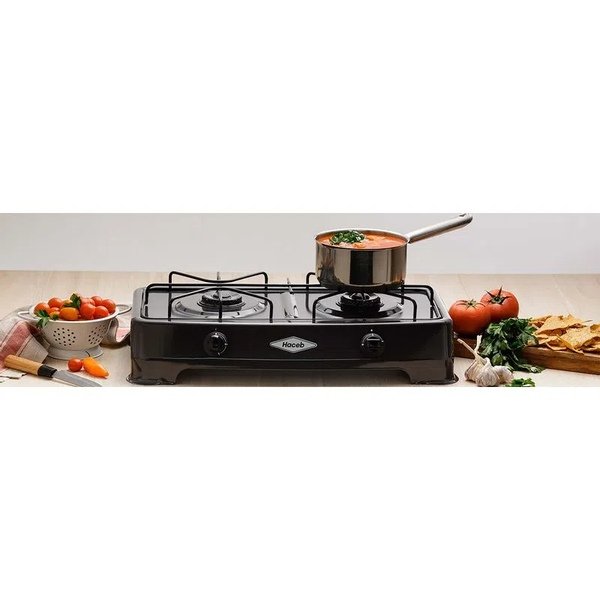 Cocineta a gas de 2, fuentes de calor con estabilizador de llama, acabado en esmalte porcelanizado resistente a altas temperaturas, parrillas en alambrón que te permite 8 puntos de contacto con los recipientes y brindando estabilidad en la cocción.