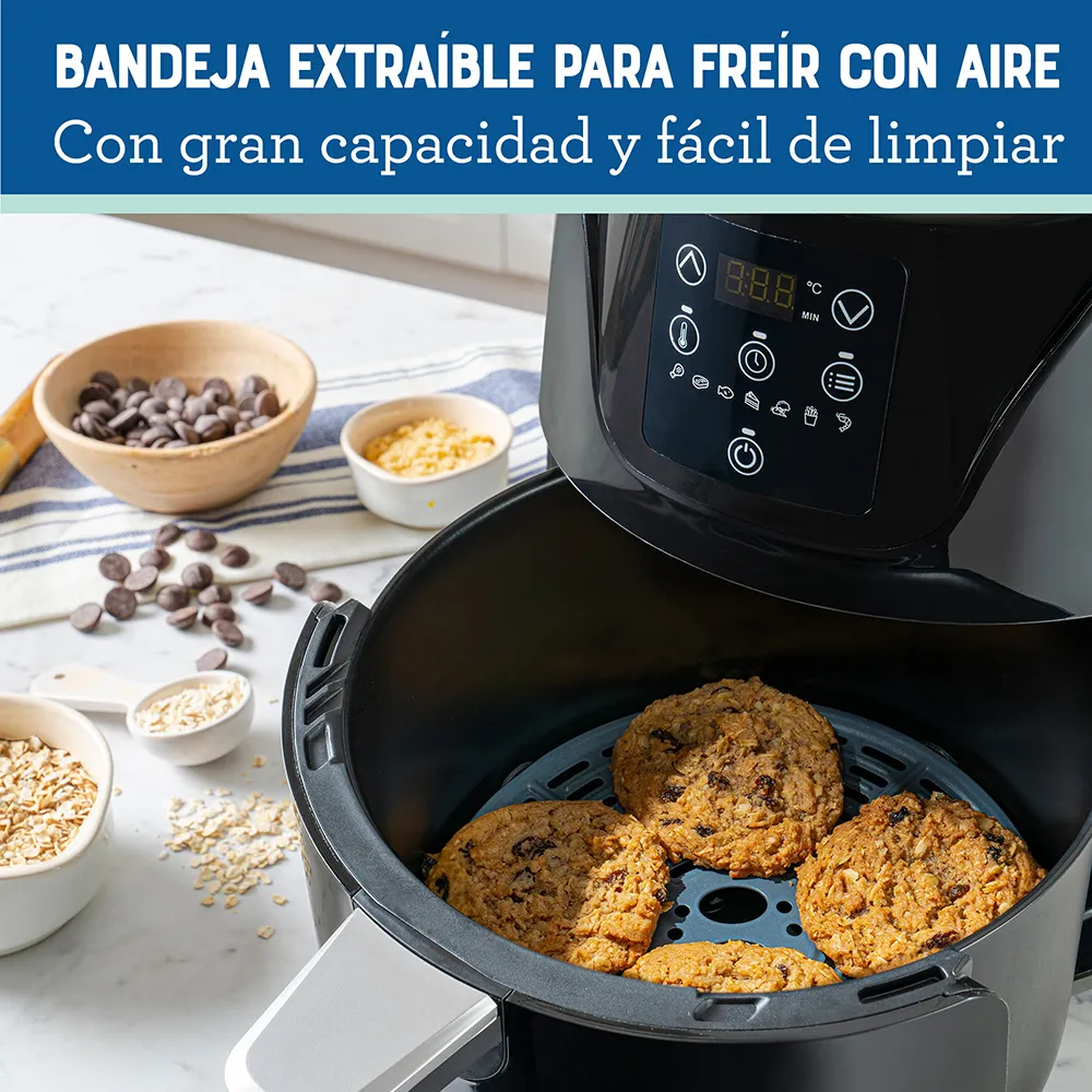 - Bandeja de freír con aire extraíble para más espacio y fácil limpieza