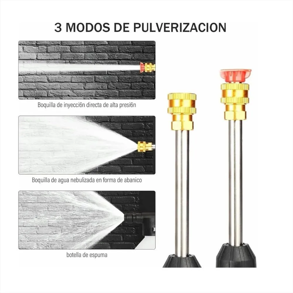 Pistola de agua lavado de alta presión no solo se puede usar para limpiar todo tipo de automóviles, bicicletas, motocicletas, vehículos de construcción, etc., sino que también se puede usar para limpiar balcones, ventanas, patios, paredes exteriores, pisos, casas, rocíe pesticidas en árboles y jardines para evitar insectos, hormigas, etc. Incluye: