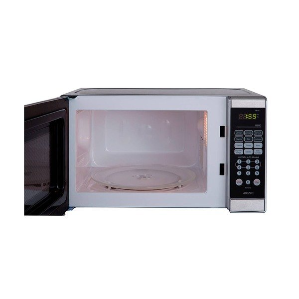 Horno Microondas en color gris de 20 lts que complementa su diseño. Con panel digital en español, 10 niveles de potencia, sistema de apertura con manija externa y cuenta con 6 programas predeterminados.