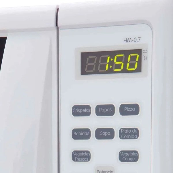 Microondas blanco de 20 Lts con manija integrada en su diseño. Con su función multietapa programa en un solo instante descongelar y cocinar tus alimentos por un tiempo determinado.