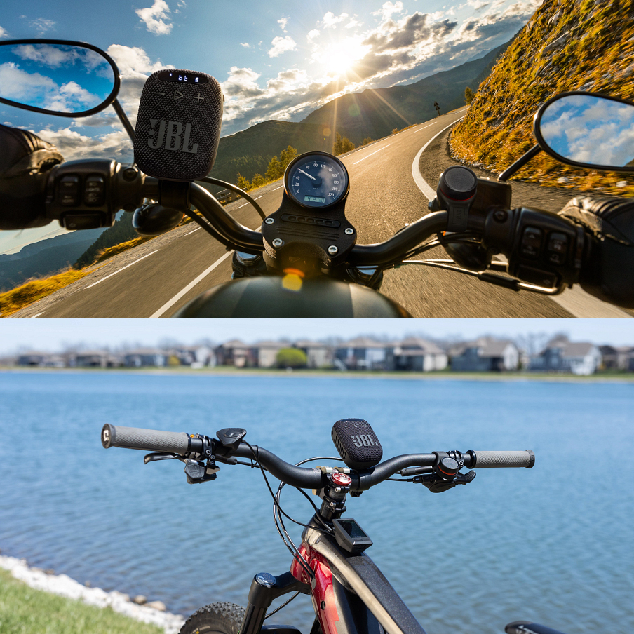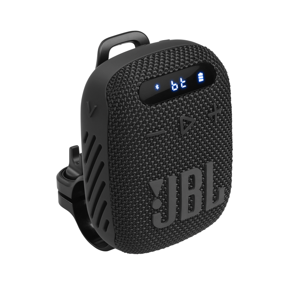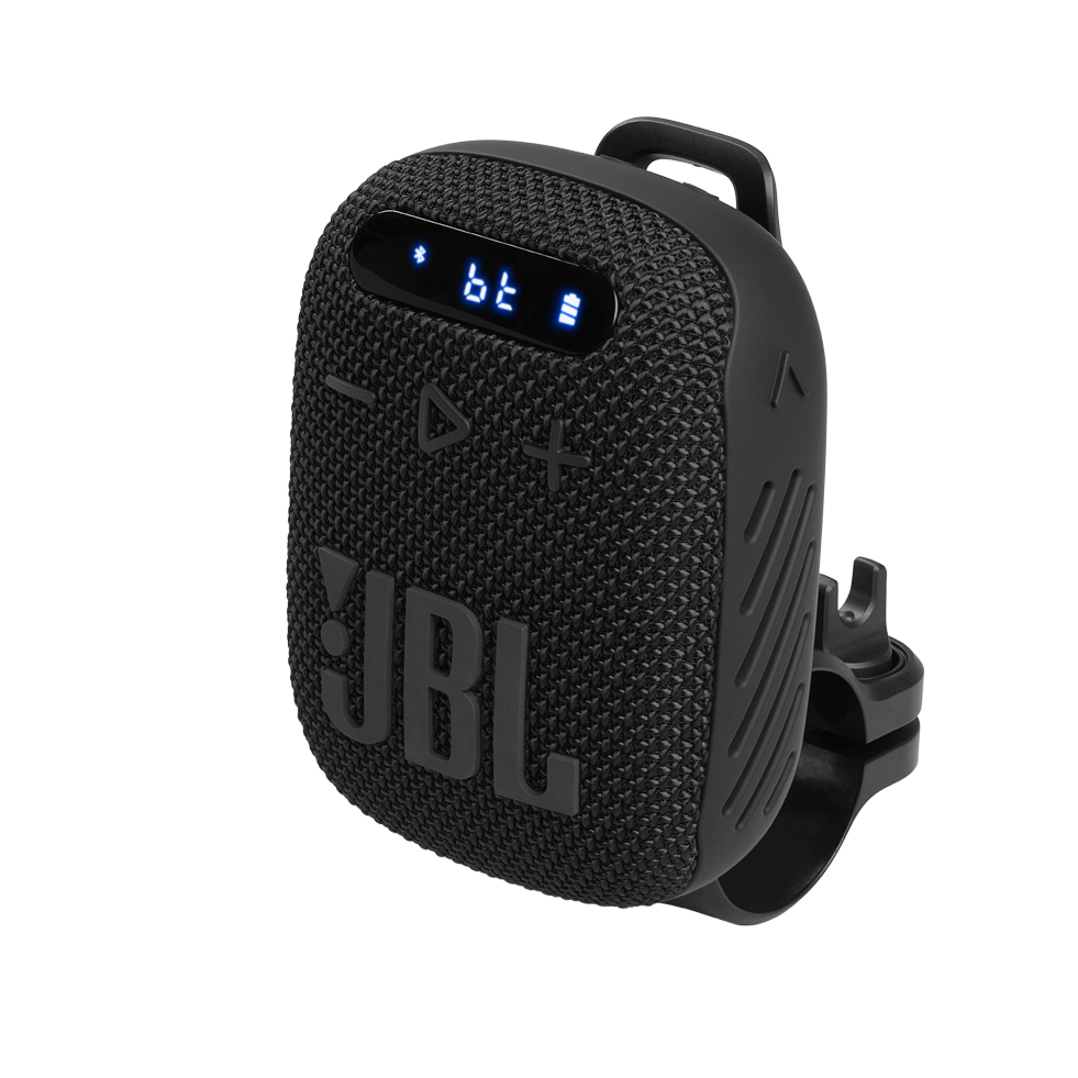 JBL Wind 3 es un altavoz Bluetooth portátil resistente para la carretera y los desplazamientos, listo para tus caminatas, para ir en bicicleta por la calle y para cualquier otro lugar donde tus aventuras te lleven. Se pueden enganchar y desenganchar sin esfuerzo en una base con soporte incluida, diseñada específicamente para manillares de bicicleta o motocicleta.