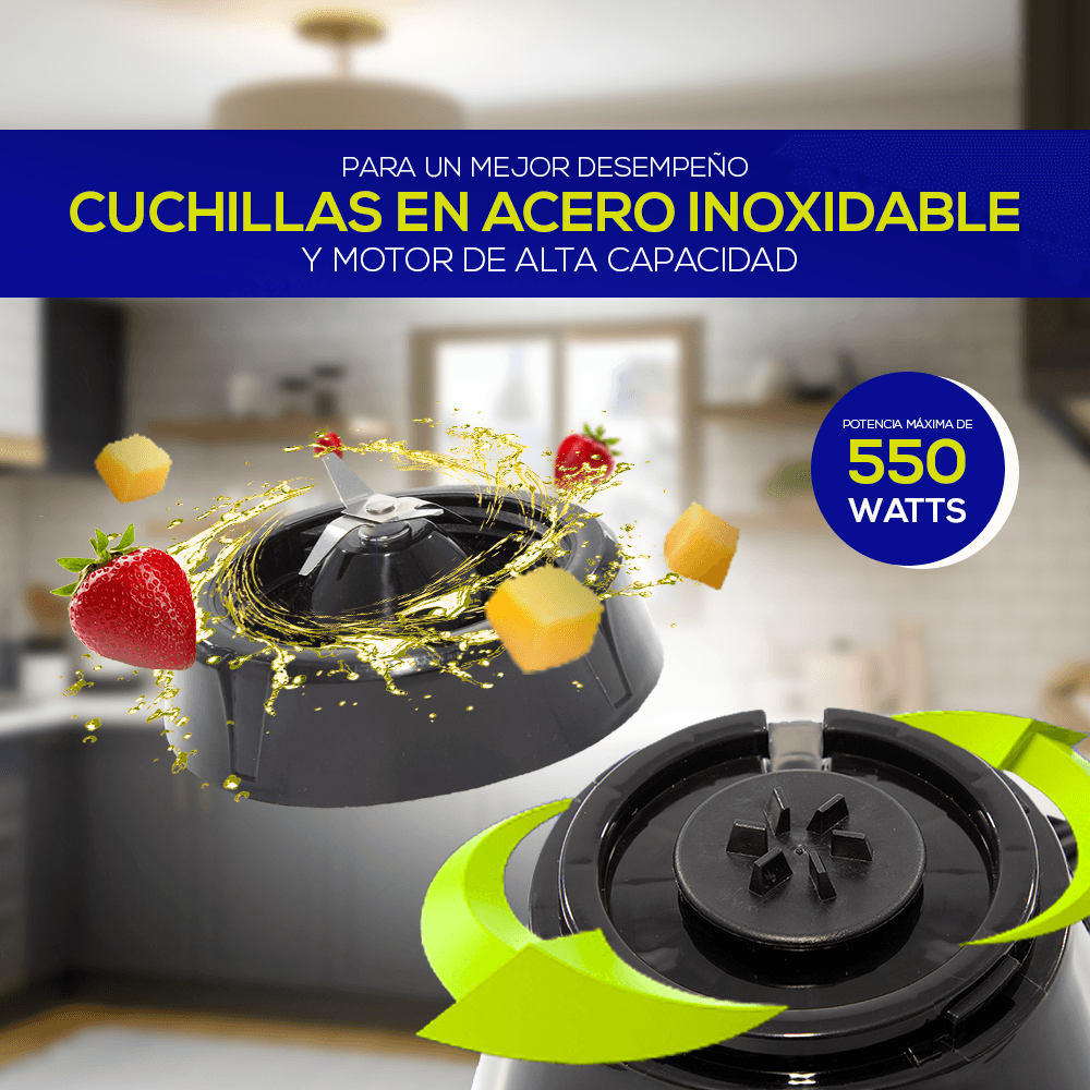 • 4 cuchillas de acero inoxidable con tecnología Chrome Steel