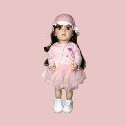 Muñeca realista con movimiento de brazos, cabeza y labios al responder a las preguntas. Incluye un control con el que se pueden hacer diferentes funciones, hace sonido de animales, canta, baila, cuentas historias, cuenta chistes, graba tu voz.
