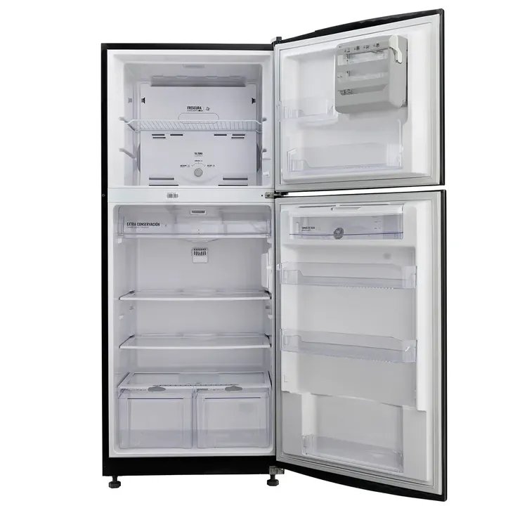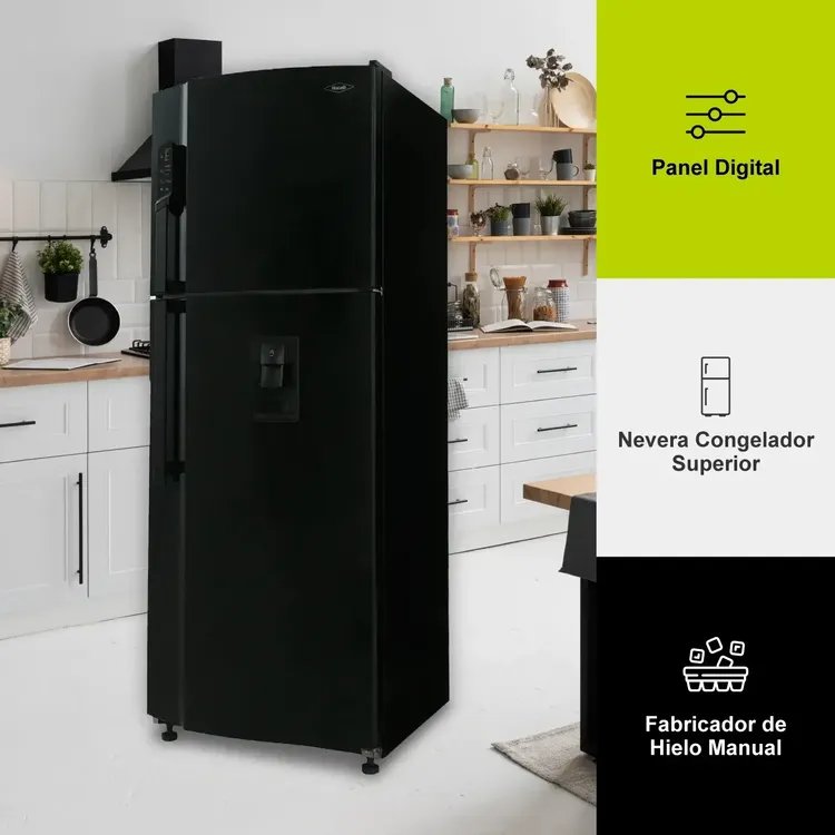 Nevera Haceb negra de 404 litros brutos, diseñada para alargar la vida de tus alimentos, única con sistema de conservación Himalaya de 5 componentes: frio sectorizado y estable en cada zona, corrientes de frio óptimas, separador de frutas y verduras y compartimiento extra-frio. Cuenta con iluminación tipo LED, amplio espacio interior con distribución modular y un novedoso fabricador de hielo que te entrega hielos grandes y fáciles de sacar, ademas tiene un panel digital con funciones inteligentes.