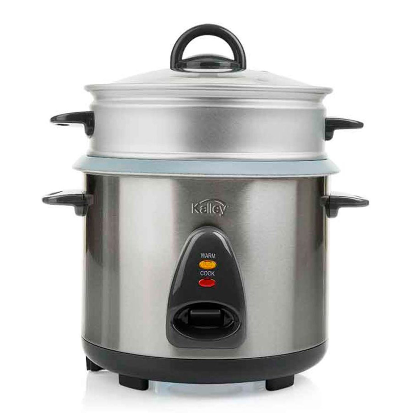 Olla Arrocera Kalley con vaporizador Gris Acero Inox. viene con medidor y cuchara plástica. Garantía de 2 años.