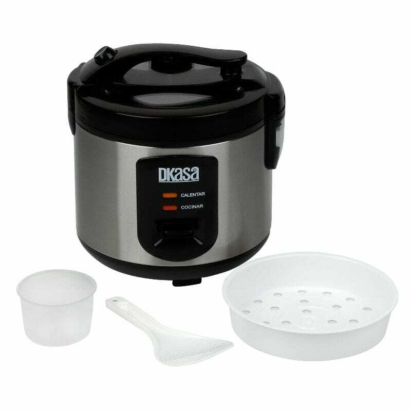 Olla arrocera hermética de acero inoxidable de 1 libra, viene con medidor y cuchara plástica. Garantía de 1 año.