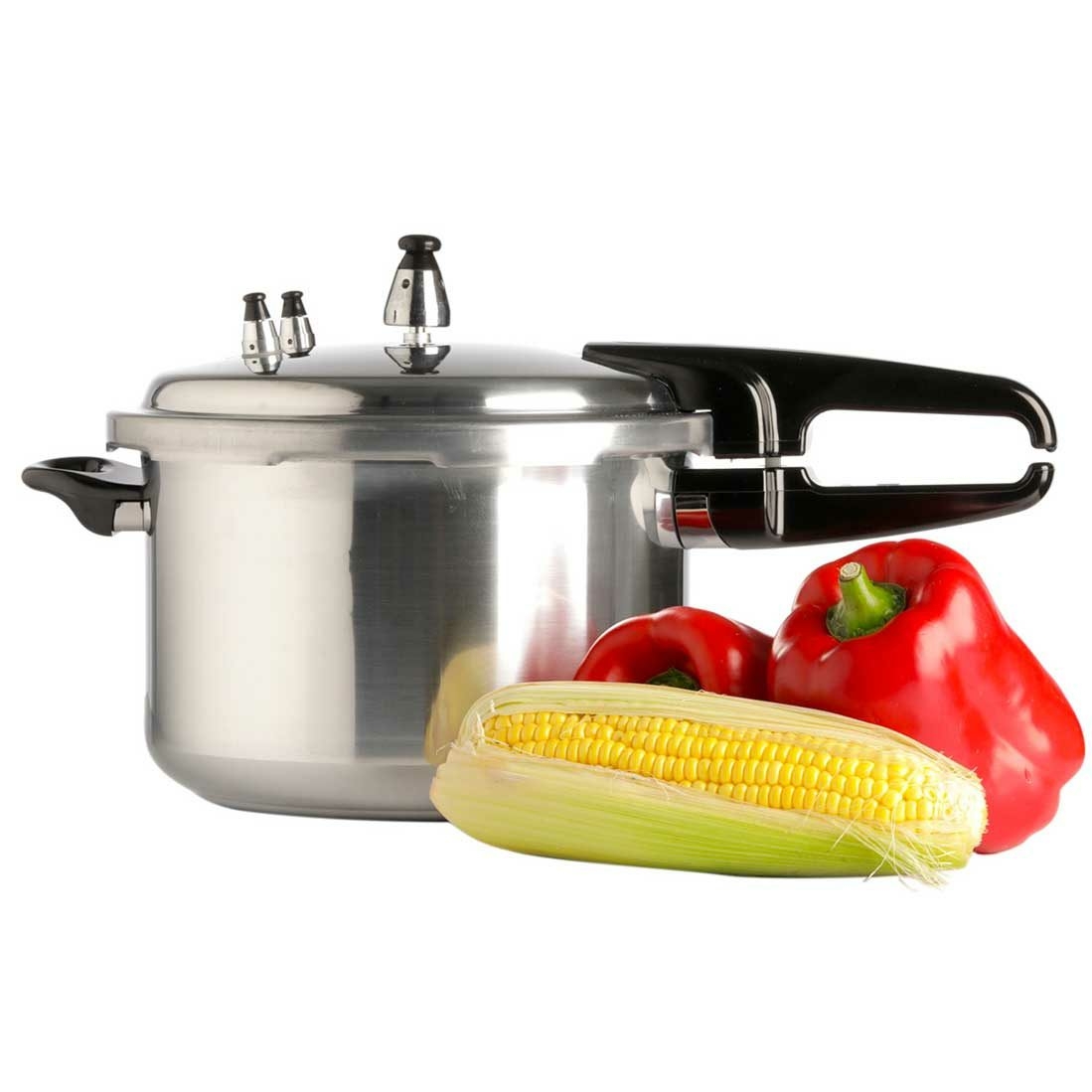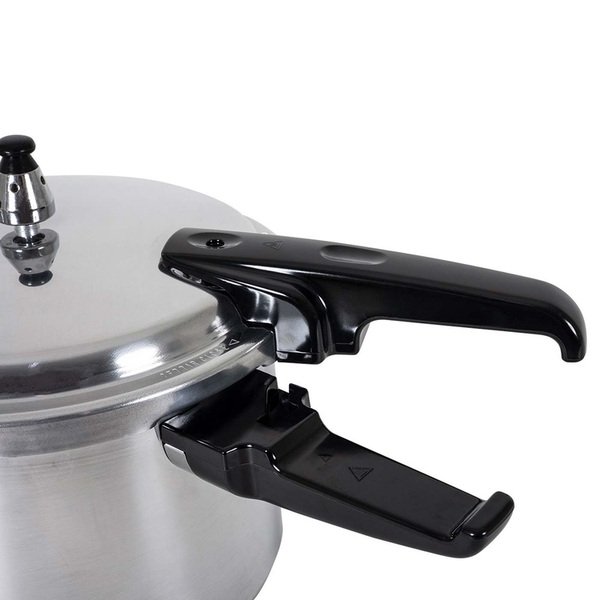 Olla a presión 6 Litros KALLEY cierre externo con cuerpo en aleación de aluminio de alta calidad y paredes gruesas (1.3 mm) que brindan seguridad y tapa en aluminio de 2.2 mm, para un perfecto funcionamiento y máxima seguridad. Cuenta 5 sistemas de seguridad (1 válvula reguladora de presión, 2 válvulas de seguridad, sistema de bloqueo en el mango y ventanillas de liberación de presión), anillo de silicona que permite un cierre hermético de la olla, mango y asa frontal fríos al tacto, resisten altas temperaturas y ayudan a soportar el peso de la olla.
