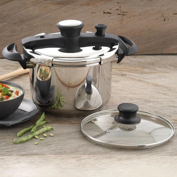 Olla A Presión Universal Easy Click 6 Litros + Tapa De Vidrio