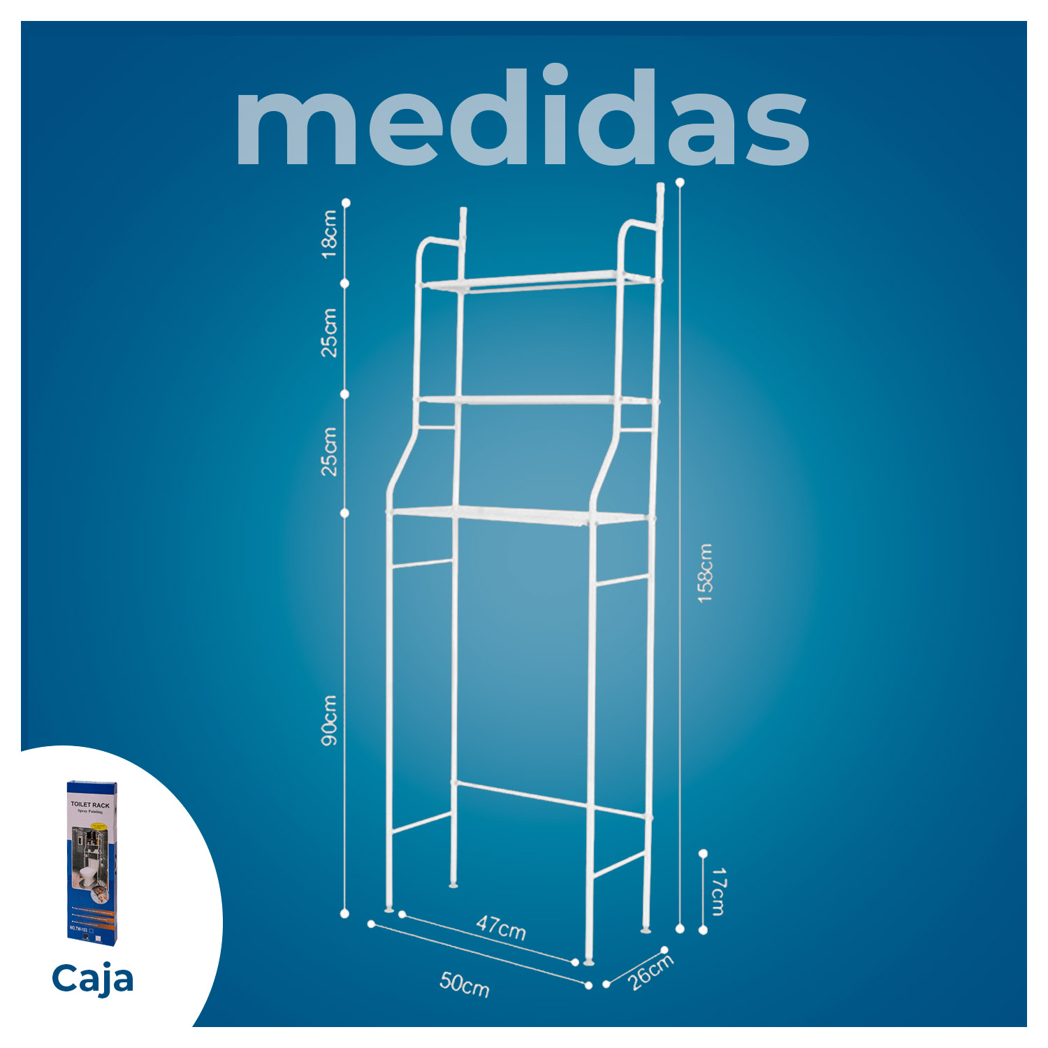 Ideal para ponerla sobre el sanitario, una opción estéticamente y práctica para mantener en orden baños muy pequeños. Esta estantería de almacenamiento de 3 niveles es la solución perfecta para crear espacios de almacenaje adicionales para baños o un cuarto de aseo, te permite organizar fácil tu baño o sala de lavandería.