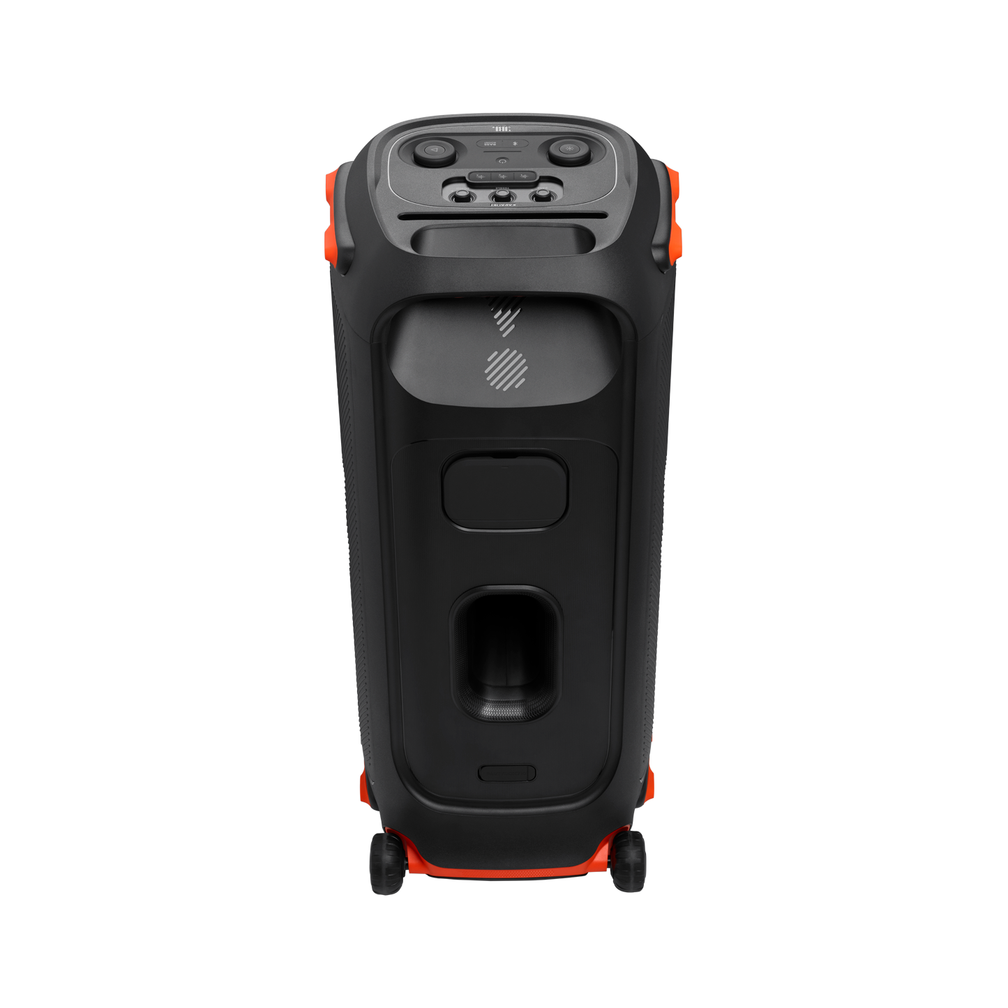 Crea una conexión musical instantánea con 800 potentes vatios de sonido JBL Original Pro de alto rendimiento. Los altavoces de agudos duales de 70 mm y los altavoces de graves de 216 mm combinados con su puerto de reflejo de bajos ajustado ofrecen un sonido perfecto y tan alto que literalmente podrás sentir el ritmo.
