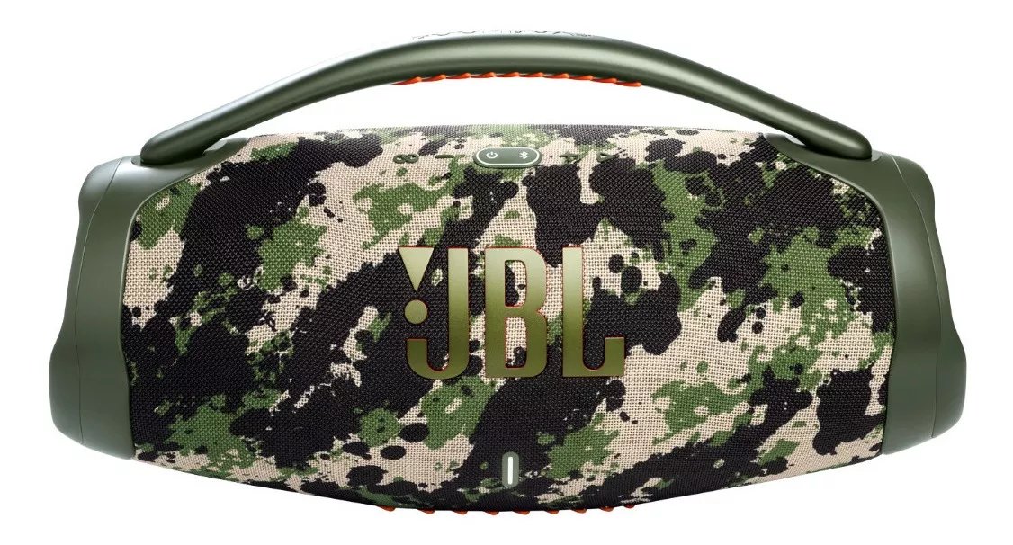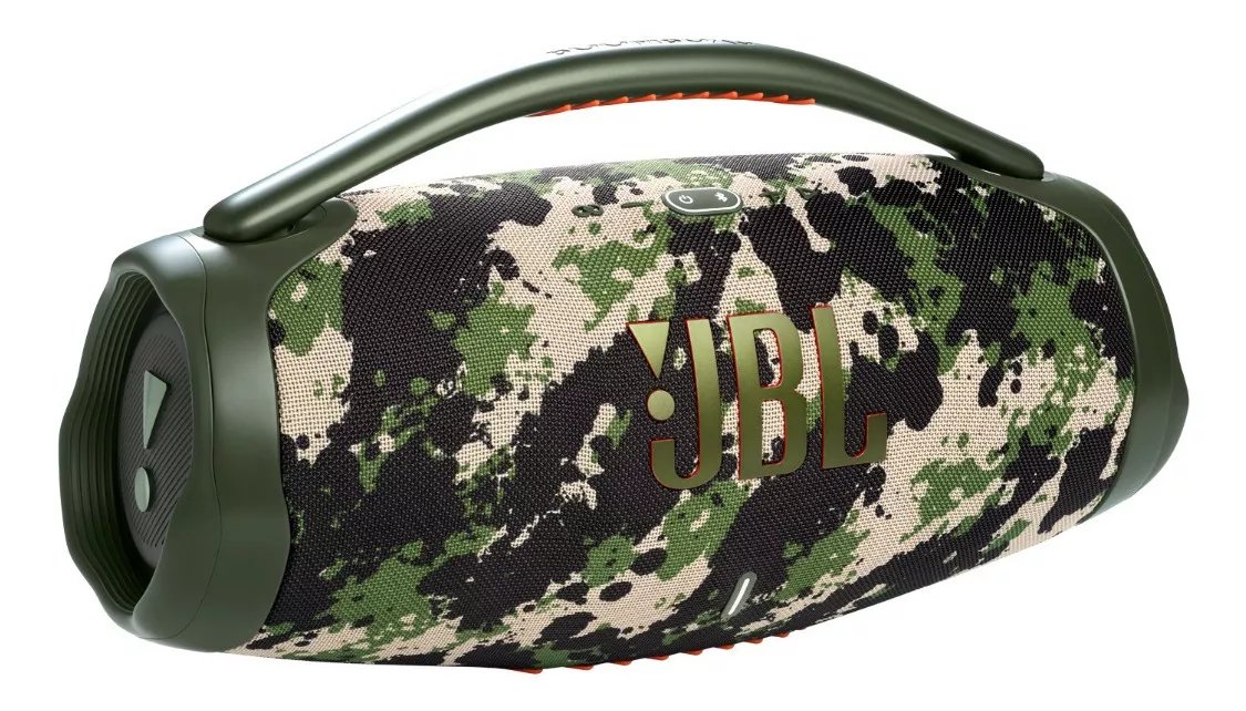 Hemos mejorado aún más nuestro altavoz Bluetooth portátil más potente. El JBL Boombox 3 presenta una nueva y atrevida versión con un resistente asa de metal y empuñaduras de silicona, dos tapas laterales y un tejido resistente al agua y al polvo. También se ha rediseñado el interior, con un nuevo subwoofer que ofrece graves mucho más profundos y el arrollador JBL Original Pro Sound, todo ello con menor distorsión. Gracias a las 24 horas de tiempo de reproducción, podrá acompañarte desde el entrenamiento de la mañana hasta la cita nocturna con tus amigos. Y para disfrutar de un sonido prácticamente ilimitado, puedes conectar varios altavoces con la aplicación JBL Portable.