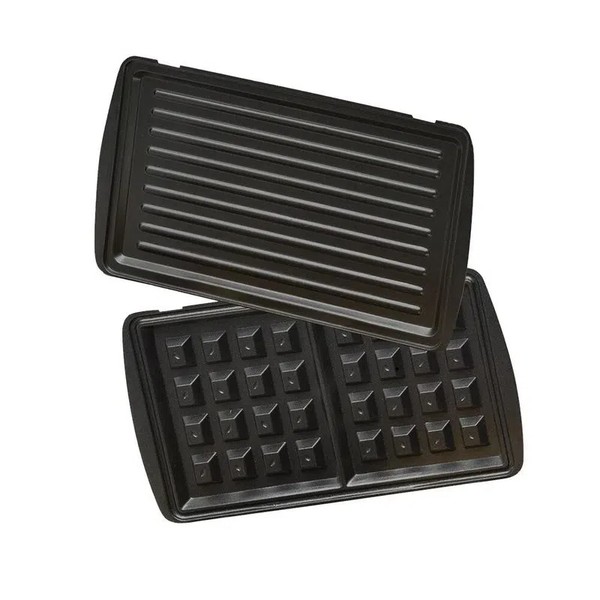 - Placa tipo grill y waffles intercambiables con 1 capa antiadherente que evita que los alimentos se peguen.