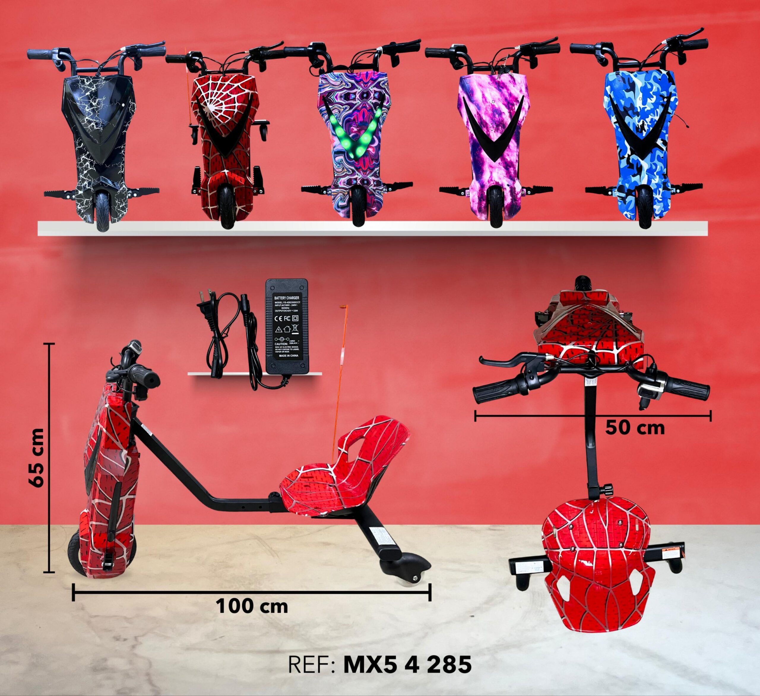 • *Rueda delantera* eléctrica y ruedas traseras especiales para drift.