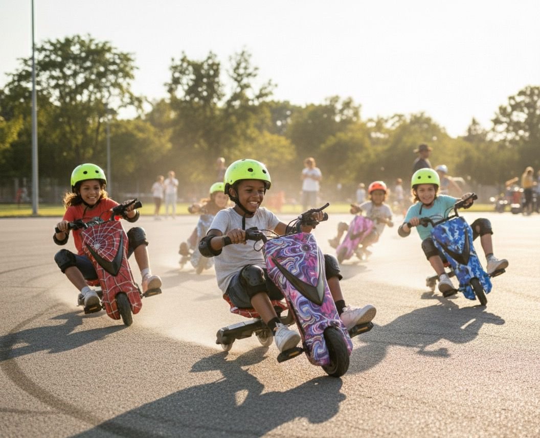 Su diseño innovador y seguro permite que los niños disfruten de giros y derrapes de 360° con total estabilidad.
